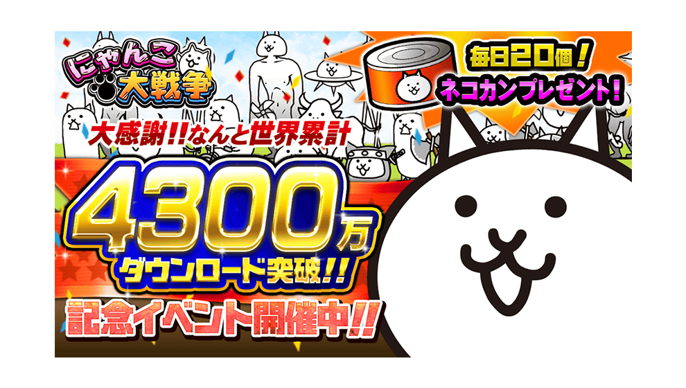 ・イベント開催期間中に「にゃんこ大戦争」アプリを起動すれば、毎日ネコカン20個プレゼント!